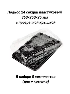 Поднос одноразовый с крышкой 24 ячейки, набор блюд 5 шт