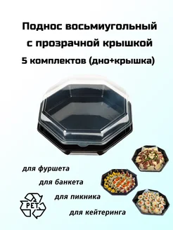 Блюдо одноразовое с крышкой, набор средних подносов 5 шт