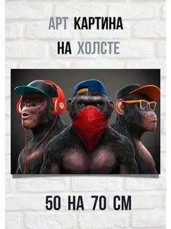 Картина арт Обезьяны макаки гориллы на холсте для интерьера
