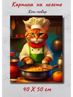 Картина на кухню "Кот-повар в зеленом фартуке" 50х40
