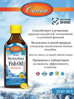 Жидкая Омега 3 со вкусом натурального лимона, 1600мг 200мл