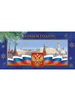 Открытка С Новым Годом Кремль и герб 10,5х21 см