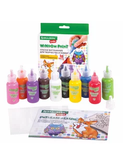 Краски витражные 10 ярких цветов, 10 туб по 20 мл