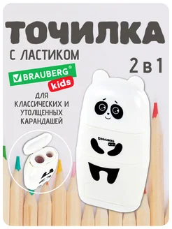 Точилка с ластиком 2 в 1 "Панда", 2 отверстия