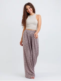 брюки пижамные штаны женские широкие домашние для сна
