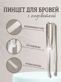 Щипцы пинцет для бровей с подсветкой + батарейки 1шт