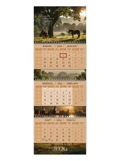 Календарь 2026 настенный трехблочный 30х84 см Лошади