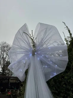 Большой белый бант на елку с подсветкой 50см