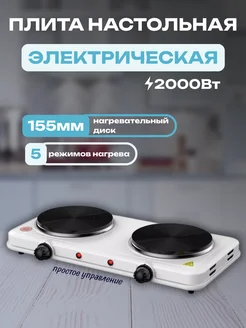 Плита электрическая настольная 2 конфорки дисковая для углей