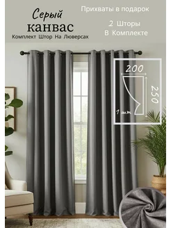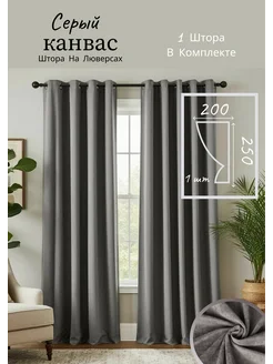 Шторы на люверсах Канвас 250 х 200, серый 2шт