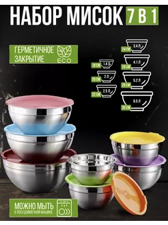 Миски-салатники металлические с крышками 7 в 1