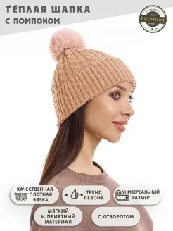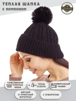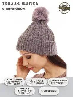 Теплая зимняя шерстяная шапка на зиму с помпоном