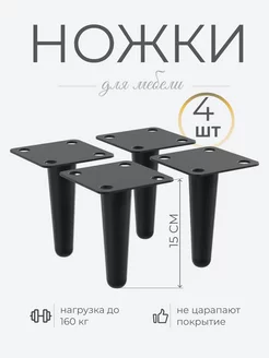 Ножки для мебели прямые, опора 15 см 4 шт (Черный)