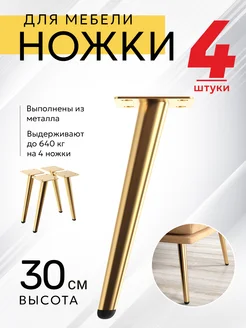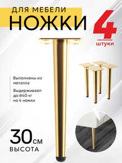 Ножки для мебели прямые, 30 см, 4 шт, Золотистый