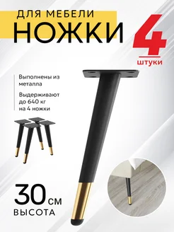 Ножки для мебели с наклоном, 30 см, 4 шт, Черно-золотистый