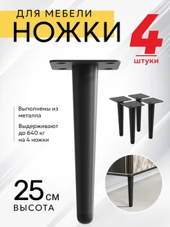 Ножки для мебели прямые, 25 см, 4 шт, Черный