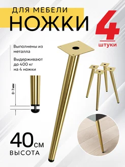 Ножки для мебели прямые, 25 см, 4 шт, Золотистый