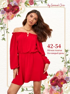 Платье мини с открытыми плечами летнее