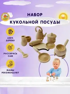 Набор деревянной посуды 10 предметов, игрушечная посудка