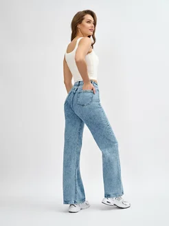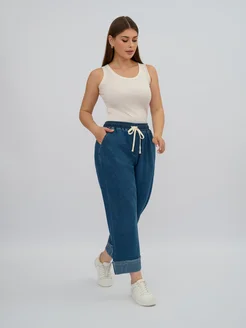 Джинсы кюлоты укороченные на резинке с высокой посадк