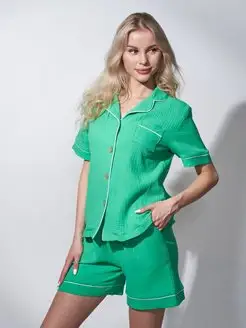 Пижама с шортами и рубашкой трикотажная хлопковая комплект
