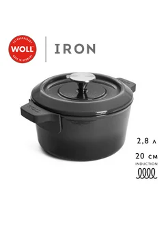 Кастрюля с крышкой h-11 см, d-20 см, 2.8 л, чугун, чёрная