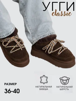 Угги натуральные со шнуровкой и подкладкой из шерсти