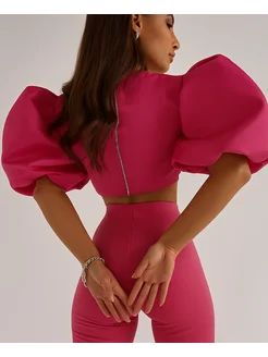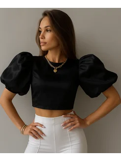 Блузка школьная с пышными рукавами фонариками укороченная