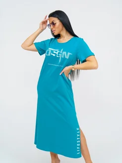 Платье женское хлопок кулирка 50-72 бирюзовое повседневное
