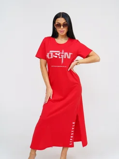 Туника-платье яркая удлиненная с разрезами хлопок