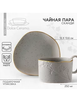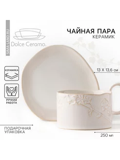Чайная пара керамическая 2 предмета кружка 220 мл блюдце
