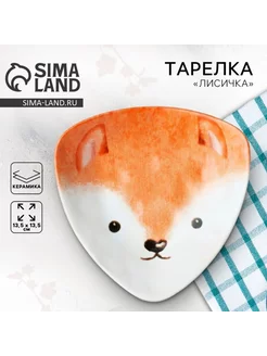 Керамическая тарелка Лисичка, белая, 13.5 см