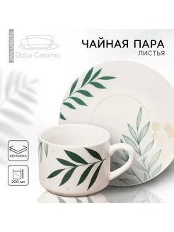 Чайная пара керамическая «Листья», 200 мл, цвет белый