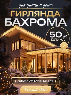 Гирлянда уличная бахрома 50м мерцающая теплый свет