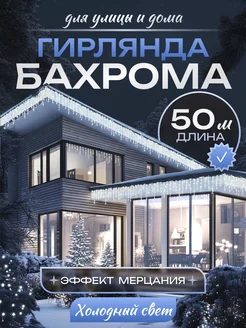 Гирлянда уличная бахрома мерцающая холодный свет 50 м