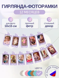 Гирлянда-растяжка на 1 годик - фоторамки 12 месяцев из фетра
