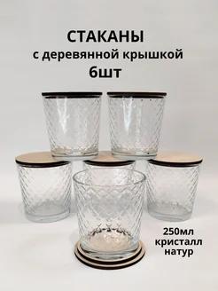 Стаканы для свечей с деревянной крышкой 6шт. 250мл. Кристалл