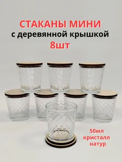 Стаканы МИНИ для свечей с деревянной крышкой 8шт. 50мл