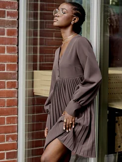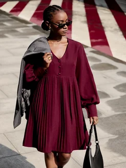 Платье оверсайз с плиссированной юбкой офисное вечернее