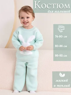 Костюм для малыша вязаный весенний с зайцем