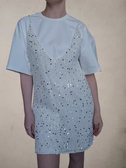 Вязаное платье с пайетками ручной работы