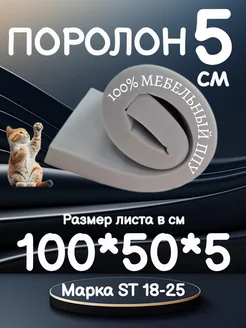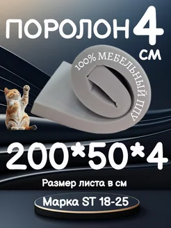 Поролон мебельный 20 мм, ST 18-25, размер 200*50*2 см