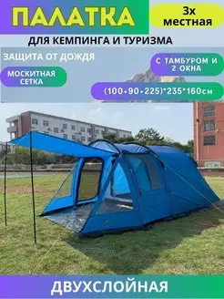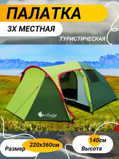 Палатка туристическая 3х-местная двухслойная с тамбуром