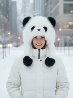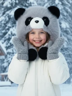 Шапка детская зимняя меховая панда с ушками