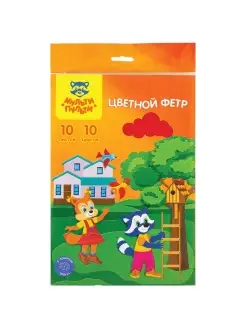 Цветной фетр Мульти-Пульти "Приключения Енота", А4, 10л, 10ц…