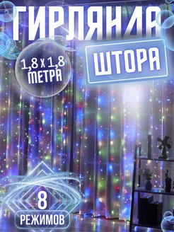 Новогодняя гирлянда штора 1,8х1,8 метра разноцветная RGB