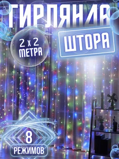 Новогодняя гирлянда штора 2х2 метра разноцветная RGB
