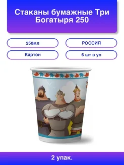 2шт. Стаканы бумажные Три Богатыря 250 мл 6 шт
