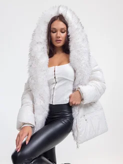 Куртка зимняя короткая с мехом и капюшоном