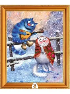 Алмазная мозаика 40х50 см. Синий кот играет на балалайке